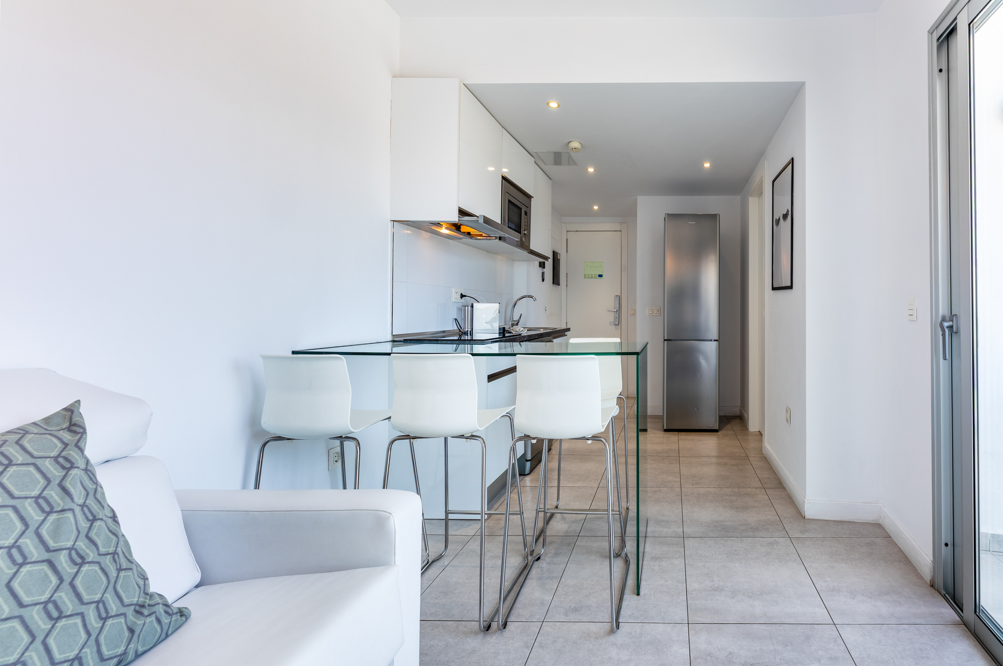 Este coqueto apartamento de 28m2 ofrece zonas de diseño inteligente que proporcionan una cómoda estancia. Decoración que cuida todo al detalle con el equipamiento más innovador, como la ducha efecto lluvia, 2 TV satélite, cocina equipada y conexión Wi-Fi. Sal a tu balcón o terraza privado y respira esa agradable brisa marina que tanto anhelas disfrutando del singular entorno que te rodea. (Servicio de limpieza durante la estancia NO incluido)