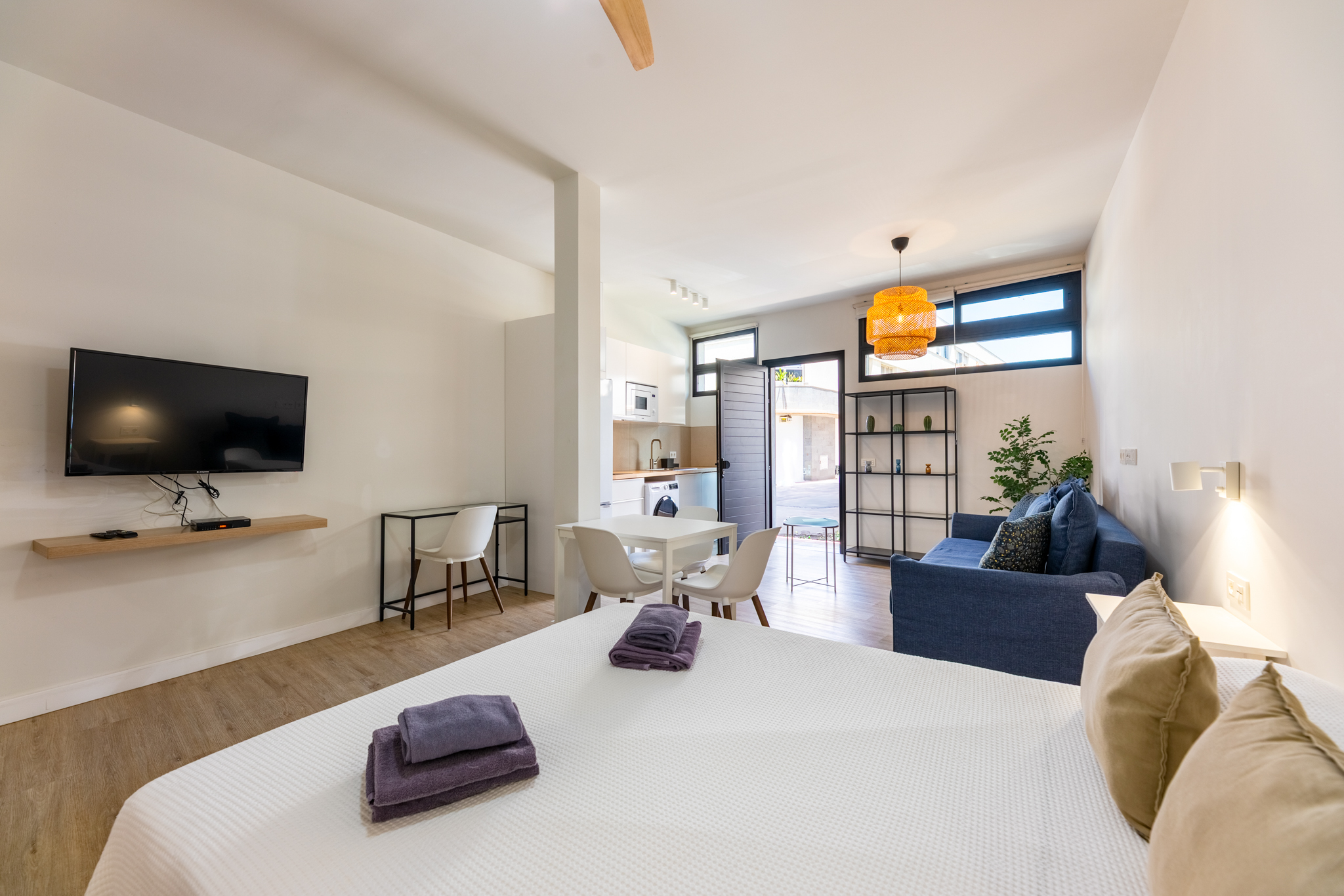 Descubre un estilo de vida exclusivo en nuestro moderno loft, estratégicamente ubicado en el complejo, representando la fusión perfecta entre la vida moderna, la comodidad y la posibilidad de disfrutar de experiencias excepcionales. Una decoración que cuida todo al detalle con el equipamiento más innovador, como la ducha efecto lluvia, TV satélite, cocina equipada y conexión Wi-Fi. (Servicio de limpieza durante la estancia NO incluido)