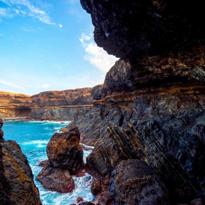 en la espectacular Ajuy con sus afamadas cuevas, donde piratas y corsarios comerciaban.
